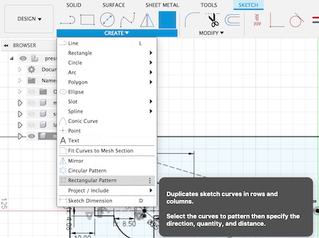 I needed to make several identical copies of this keyhole along my part, so I used the rectangular pattern tool to do it.