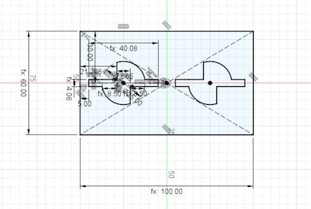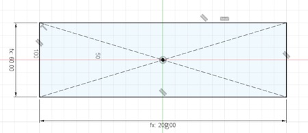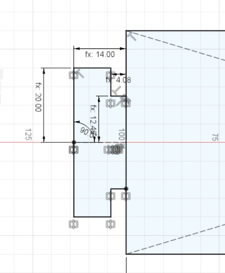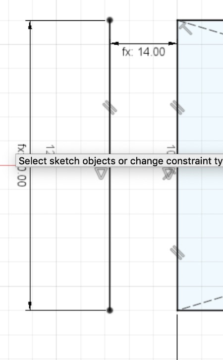 Once the shape was where I wanted it, I dimensioned it from the edges of the large rectangle in order to fully constrain it.