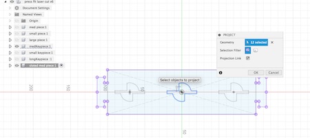 key ends. Then I made the medium piece with the kay holes visible and used the Project option to include the keyhole profile into that drawing.