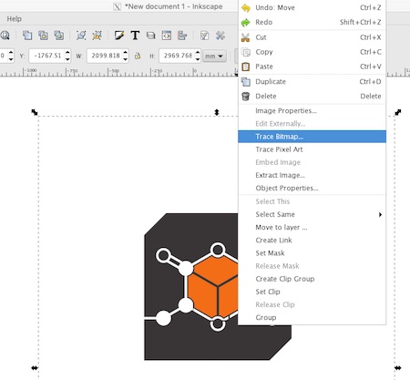 Once I had my clean files I imported them into Inkscape and I set up a canvas that was equal to our laser cutter's worktable size.