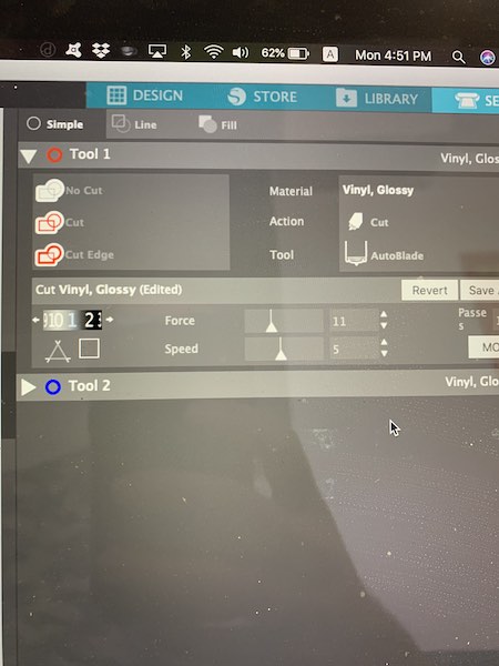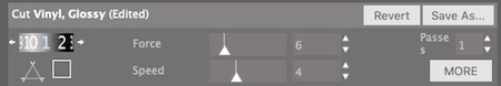 cutting speed in the software. Cut force will determine how much downward force is applied by the cutter as it moves across the material.
