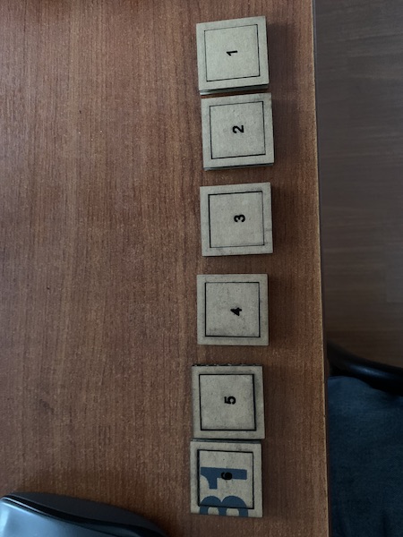 square labeled 6 was cut at a lower speed. This caused the laser to cause excessive burning on the pieces cut at slower speeds, which was