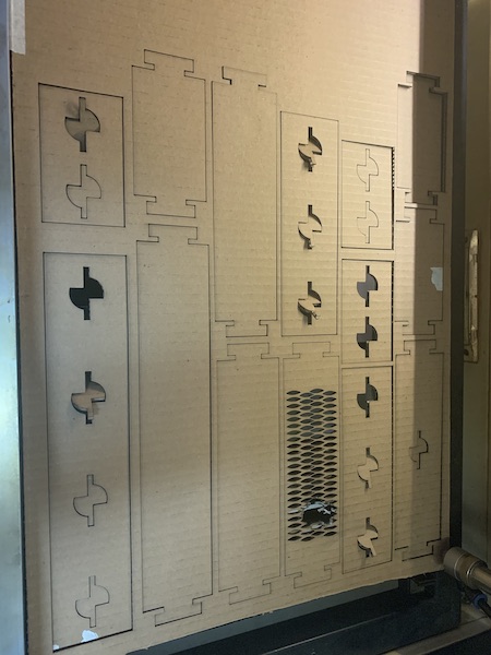 I downloaded the cut file onto the laser machine and proceeded to execute the cut. The following are the results.