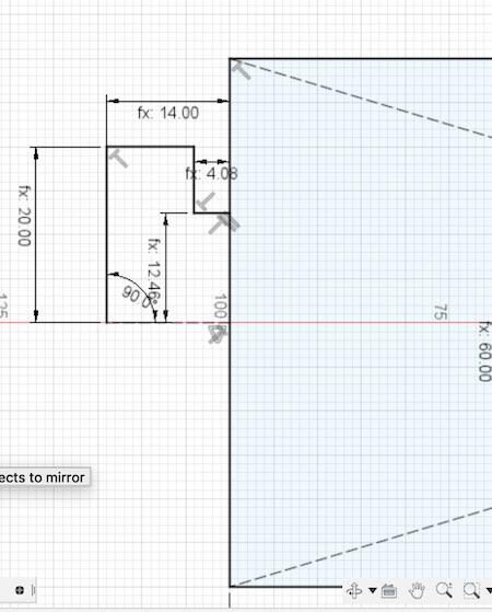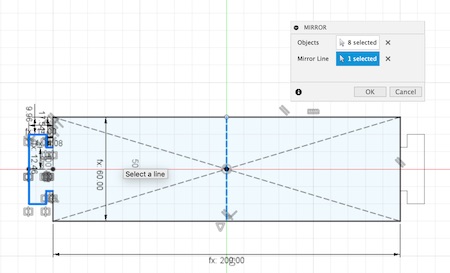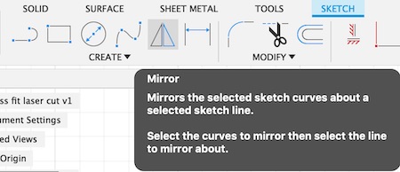 option within the sketch create menu. The mirror tool asks for two different inputs. The first is the lines that should be mirrored, and the