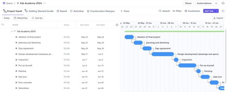By understanding project management principles and exploring a diverse array of methodologies and tools, I am equipped with the knowledge and resources to effectively plan, execute, and manage our projects, maximizing productivity and achieving our project goals within the Fab Academy course timeline.