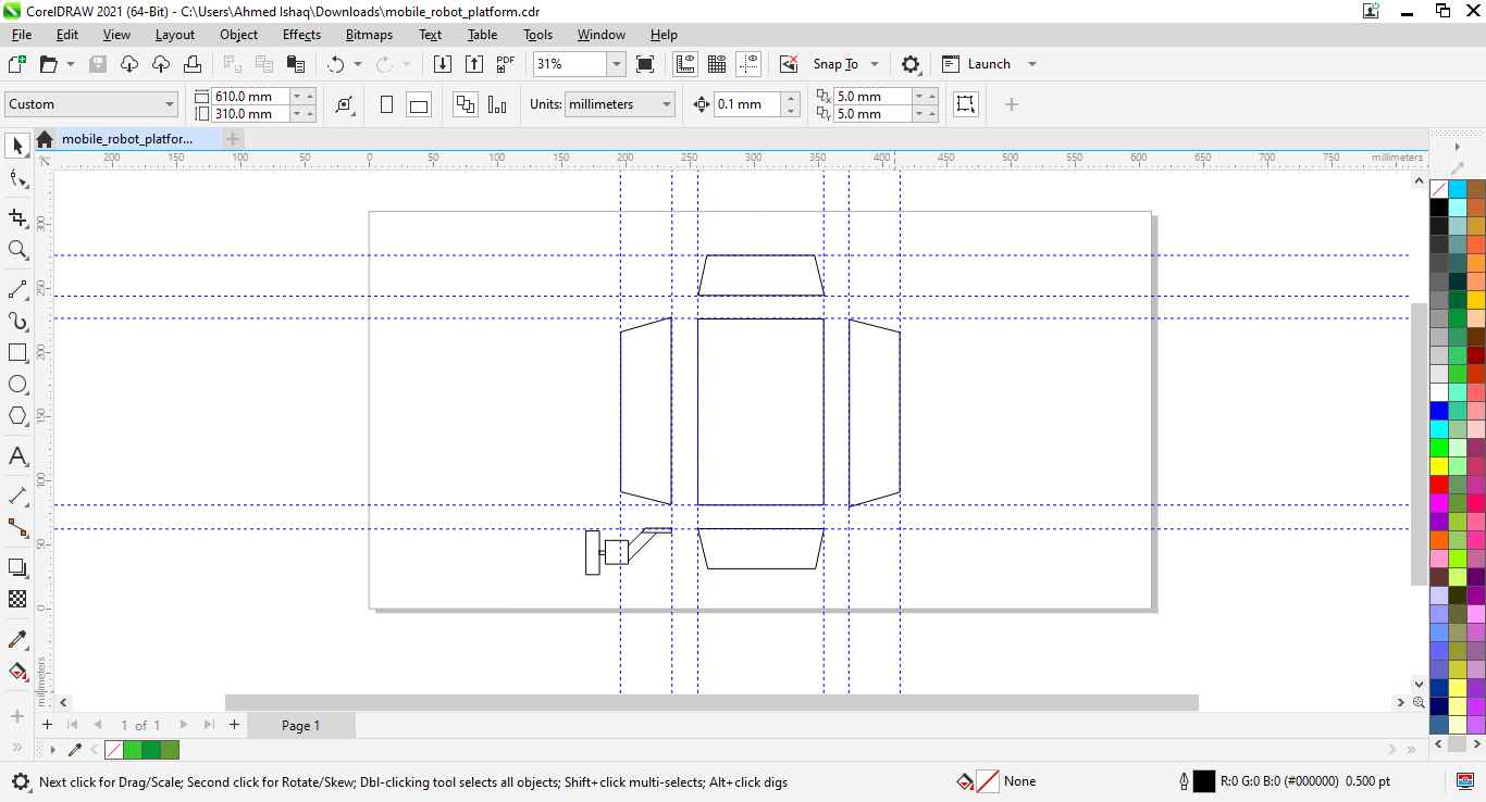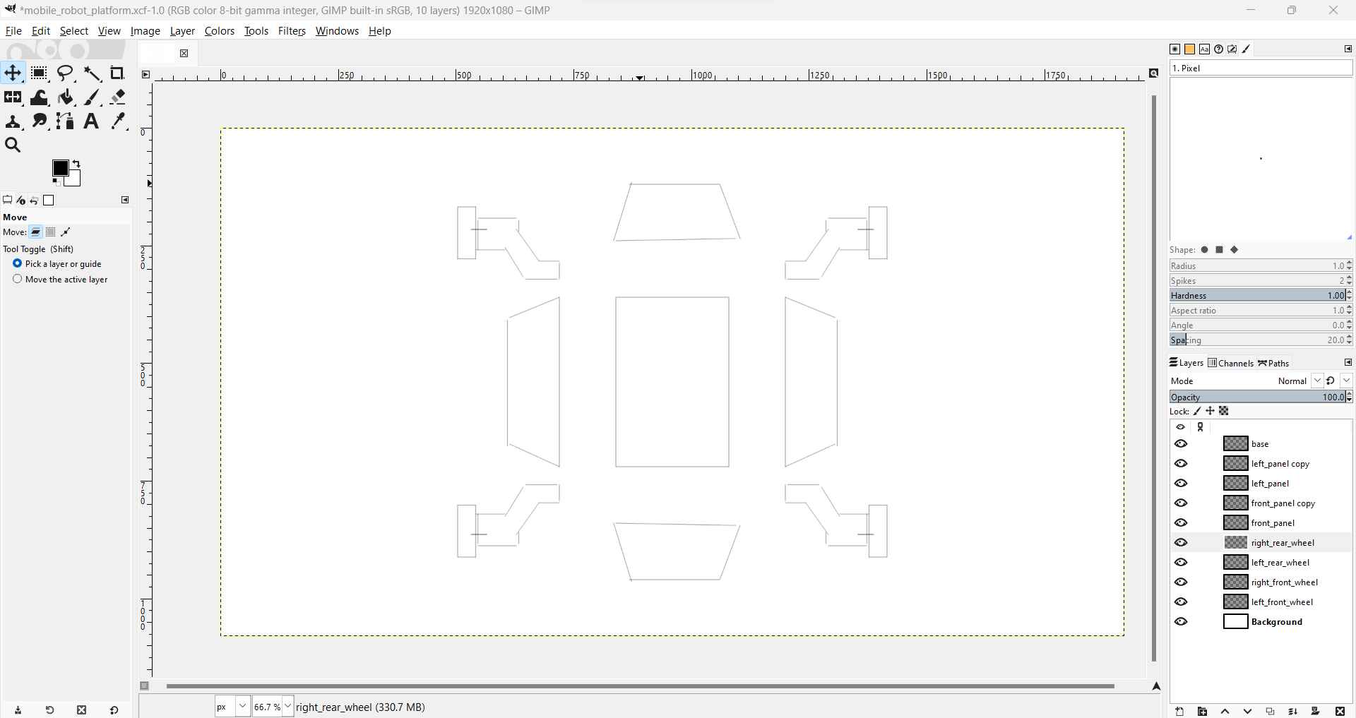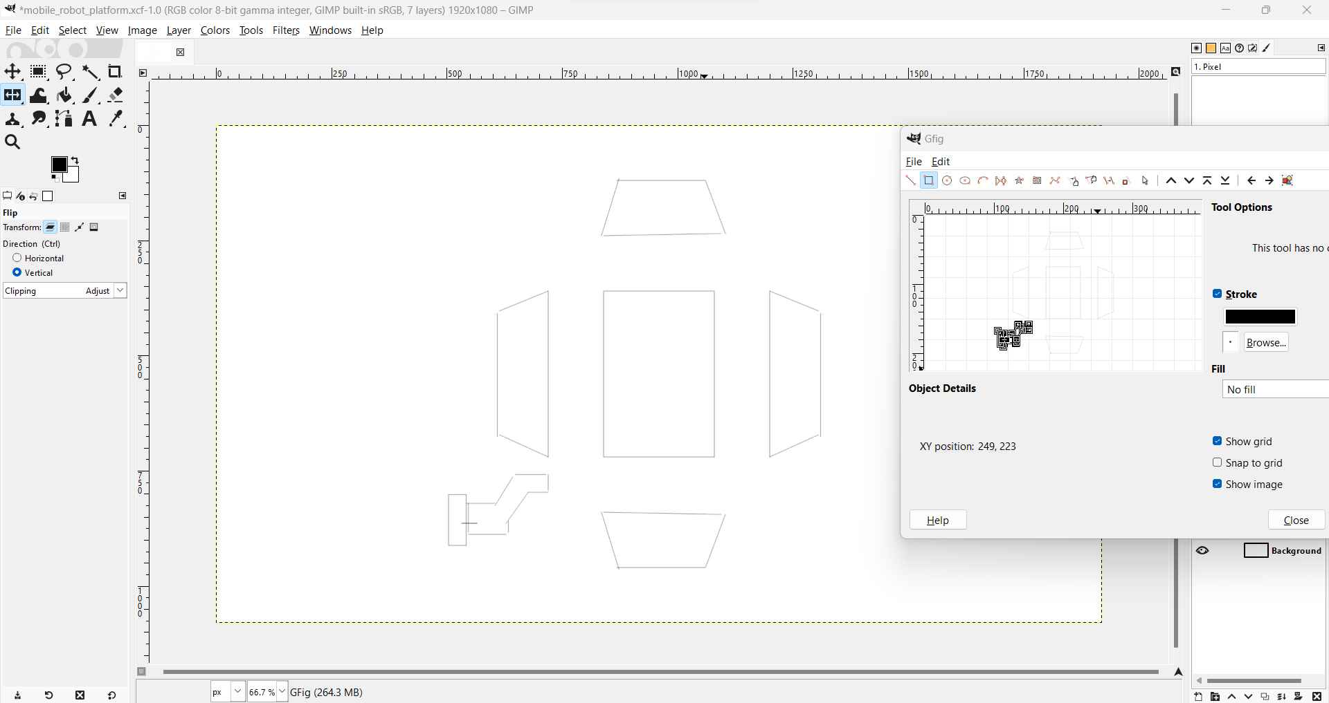 Here I draw a sketch of the mobile robot platform in GIMP.