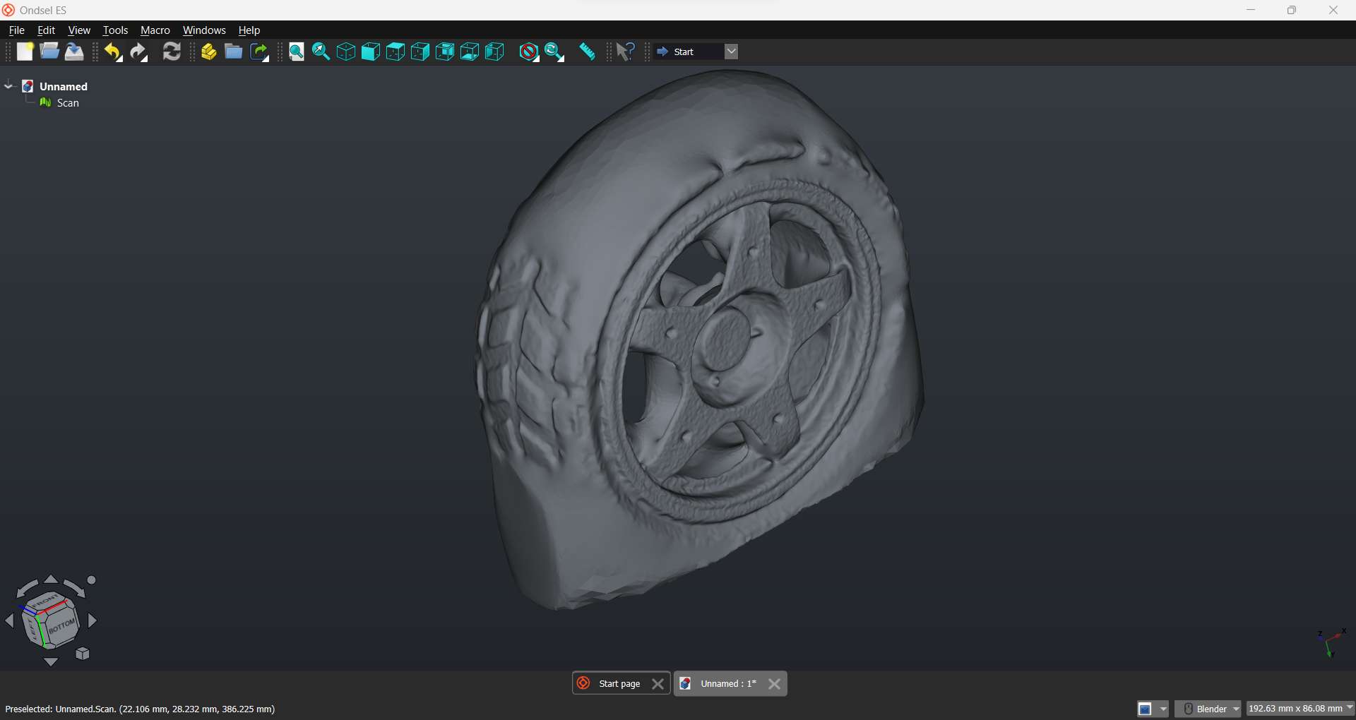 This is the result of the scanned wheel in ondSel/FreeCAD.