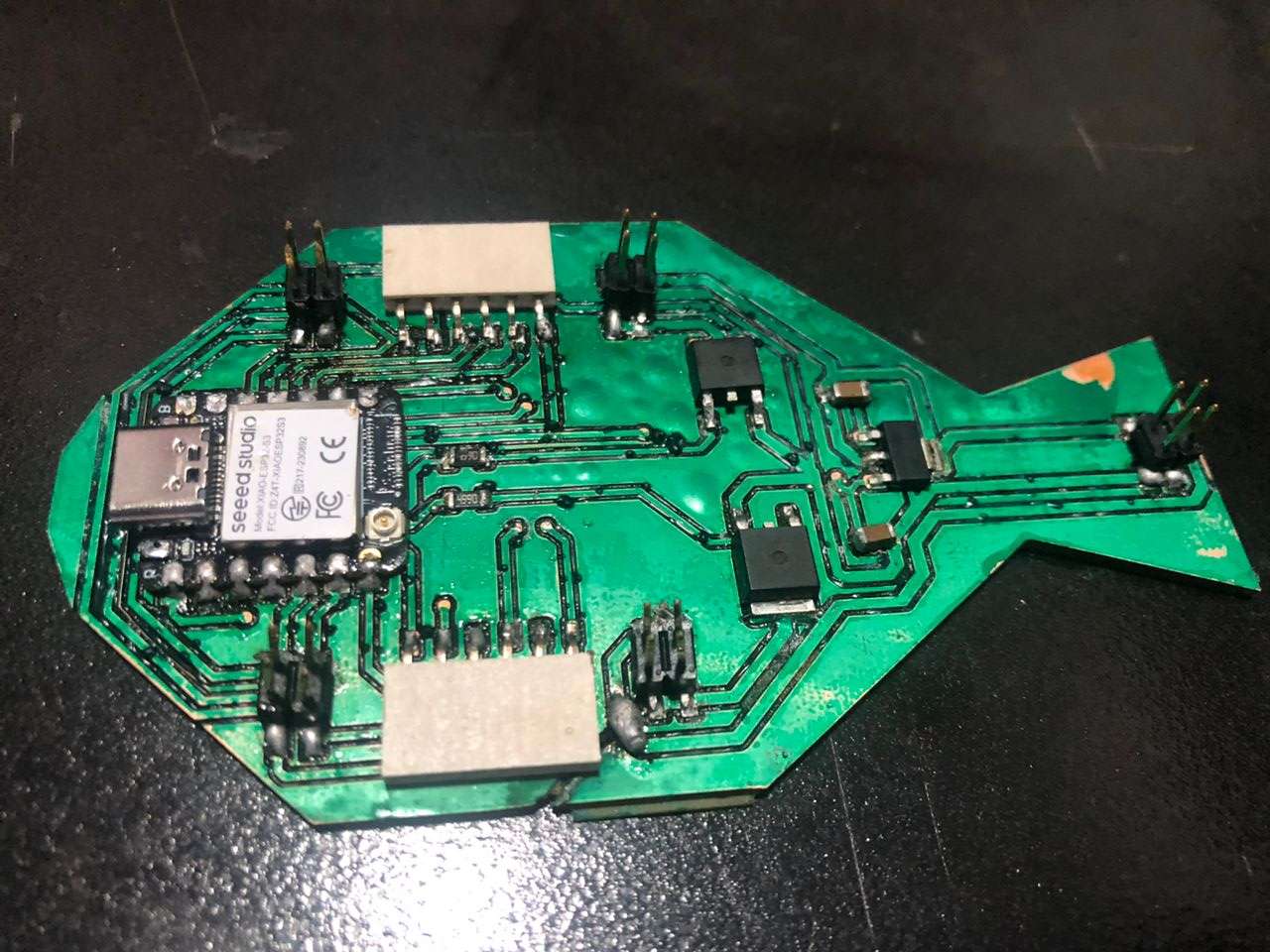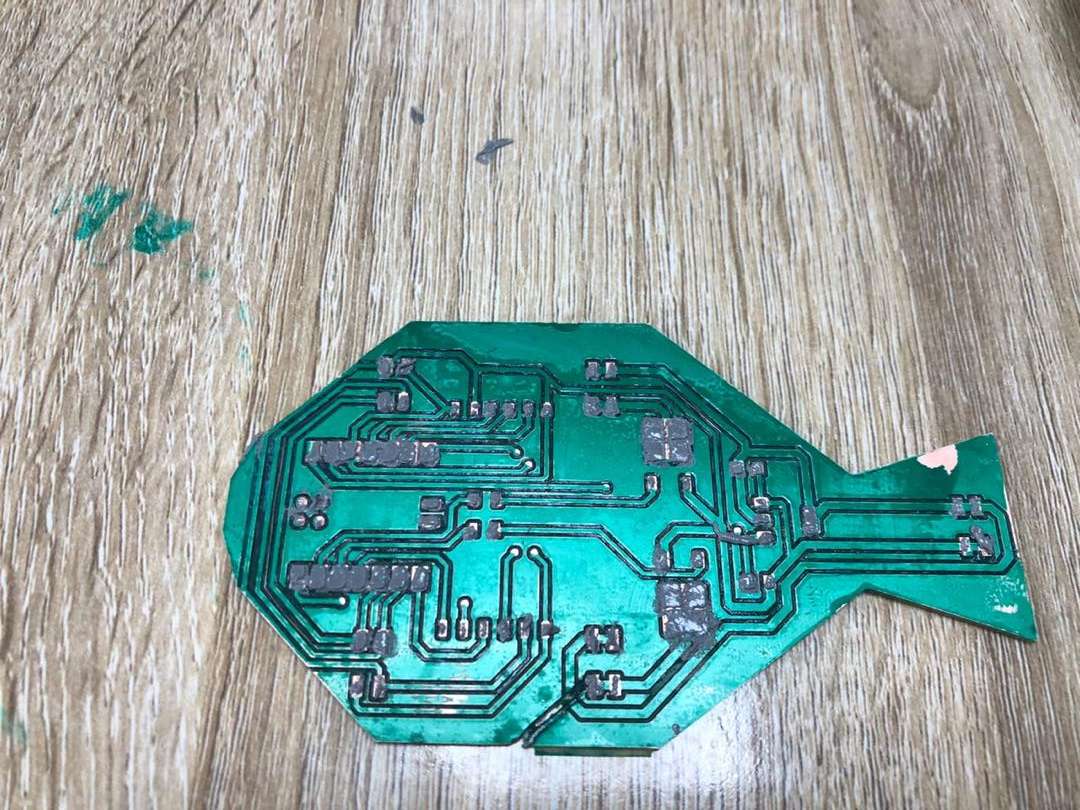 Since my project is about feeding fish, i placed the component and the board edge to form a fish shape