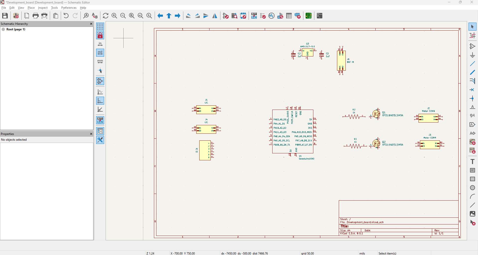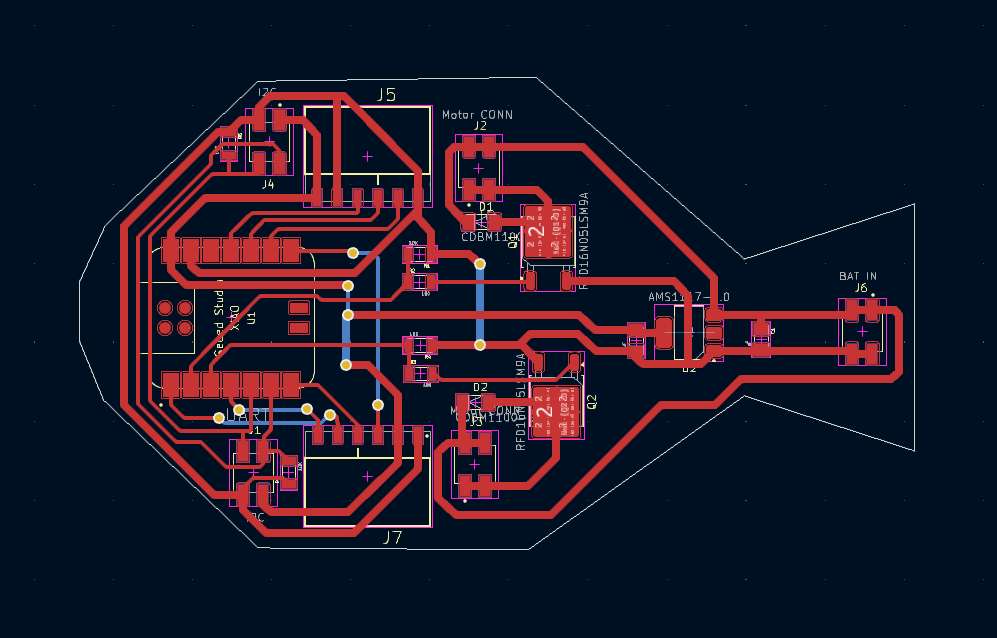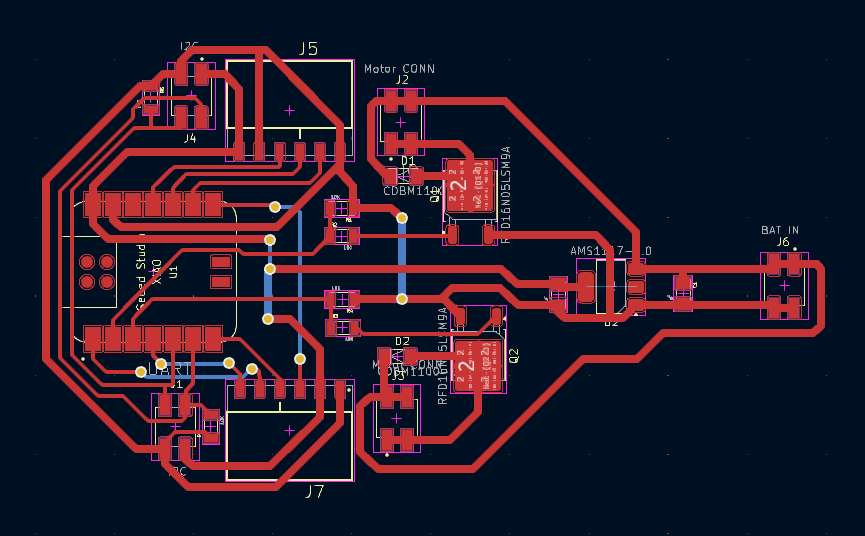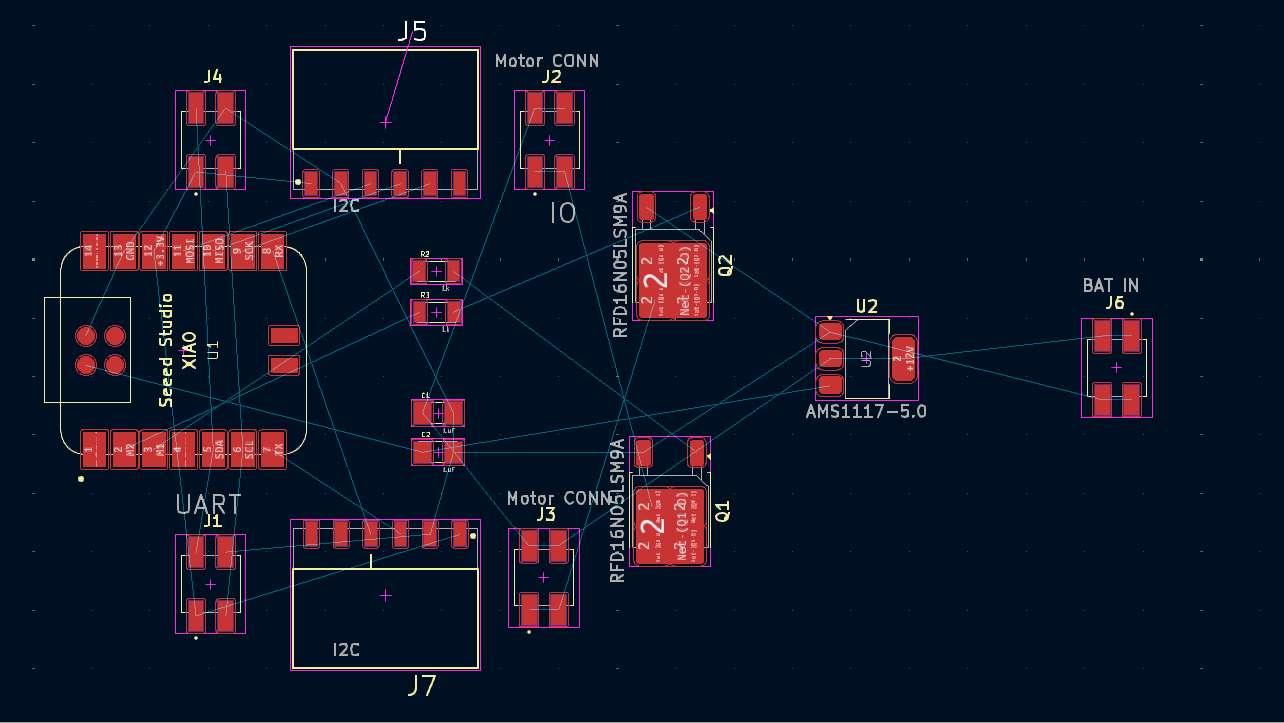 For this week's assignment, I intend to work on my final project board. The board will serve as a development board for use in the subsequent class and will also serve as a control board for my final project. It consists of xiao esp32 module couple with two mosfets that serves as motors driver and connectors for I2C, UART and IO pins.