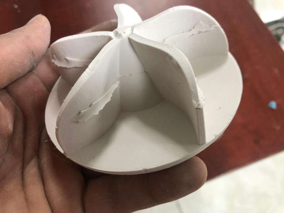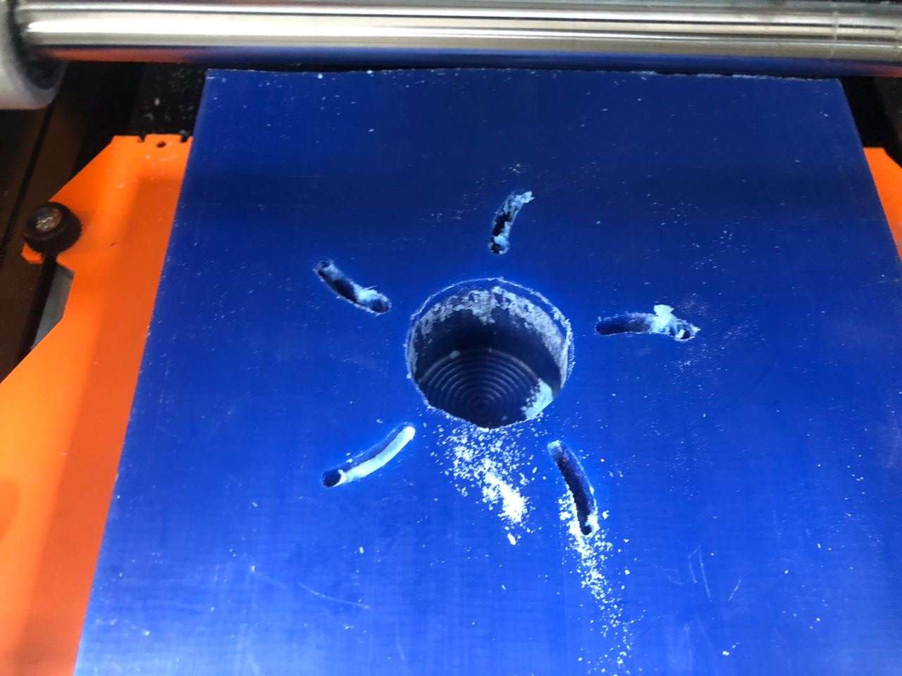 I had issues milling this part. The machine cut some paths and skiped some paths. this is because of the diameter of the bit i used is larger than the thickness of the propeller blades. I ended with this output.