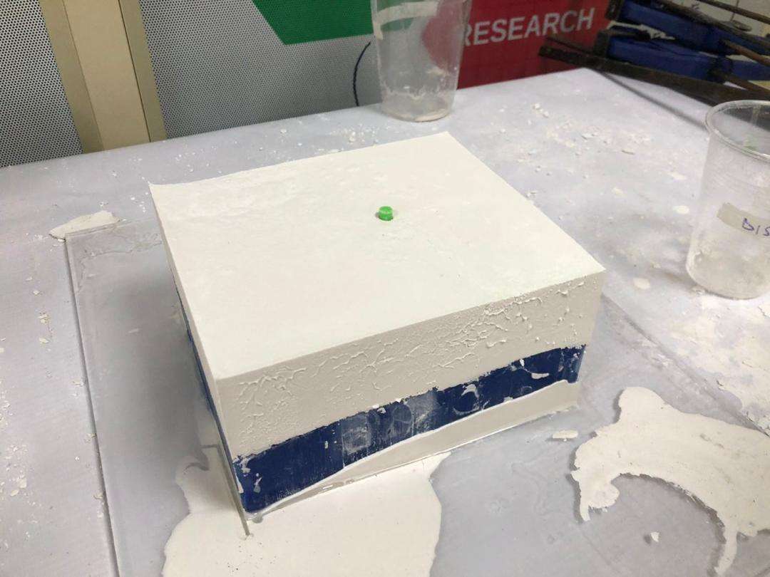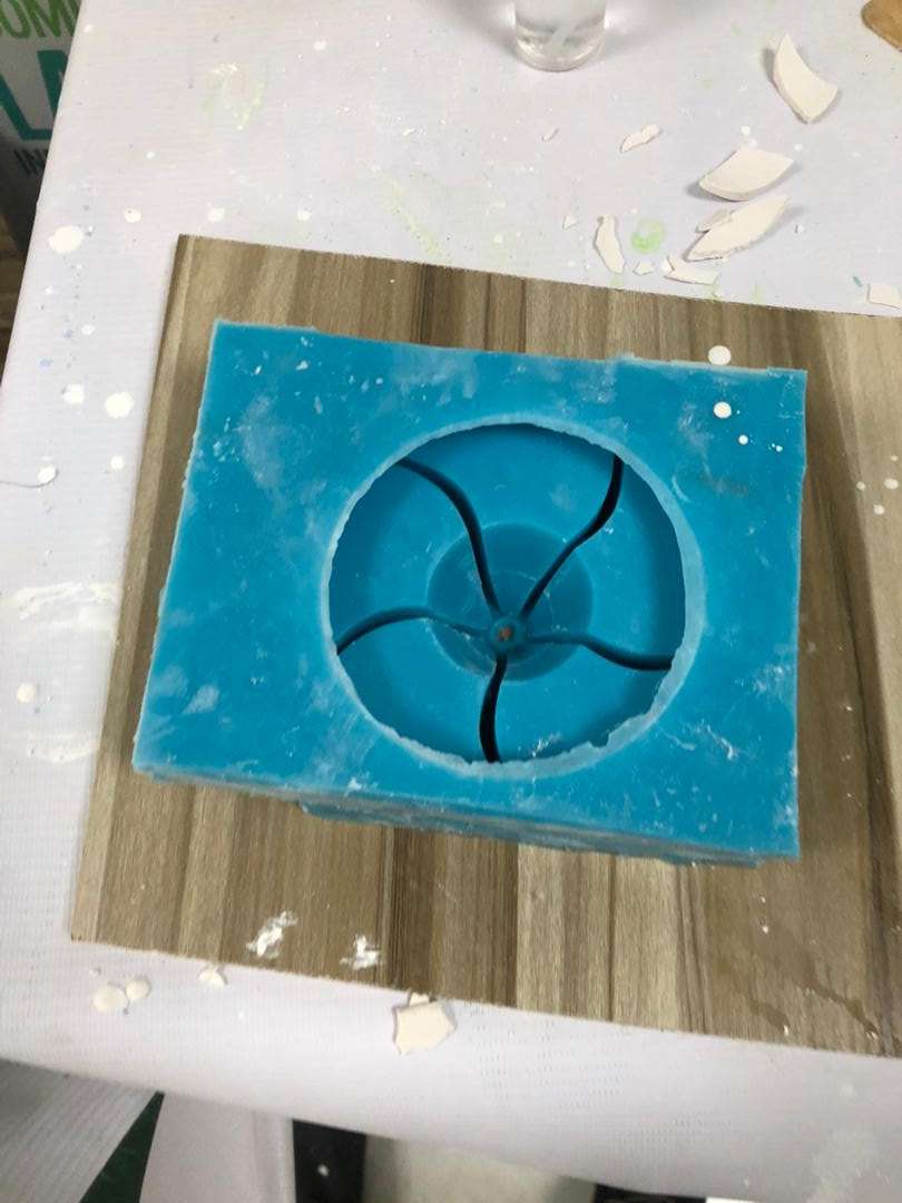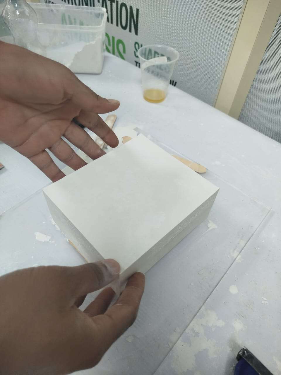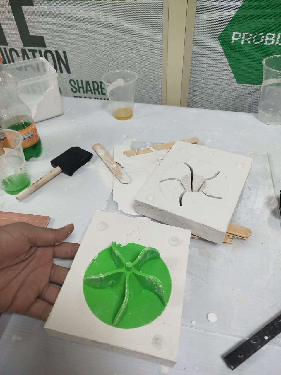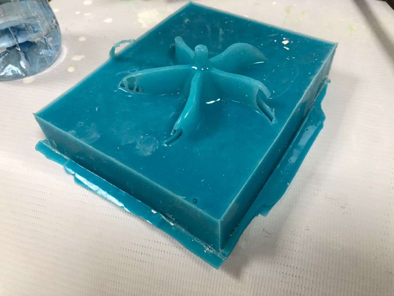 Then I used the bottom part of the mold I made from the wax to hold and secure the model so that I can cast the top part of the mold using the plaster.
