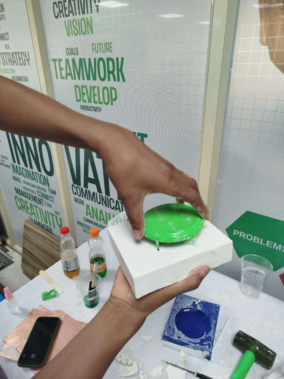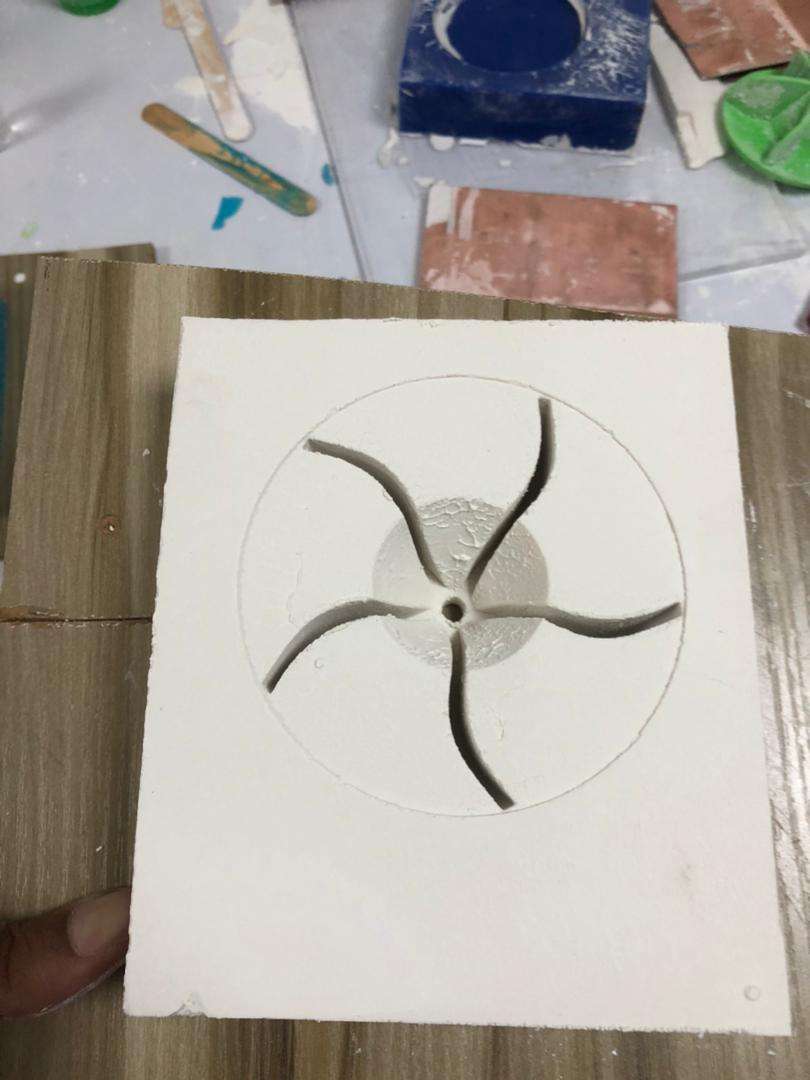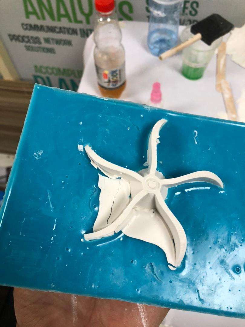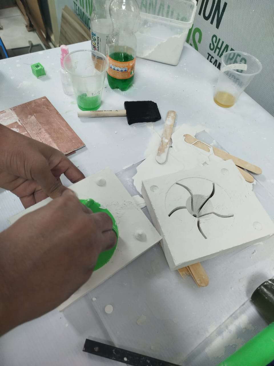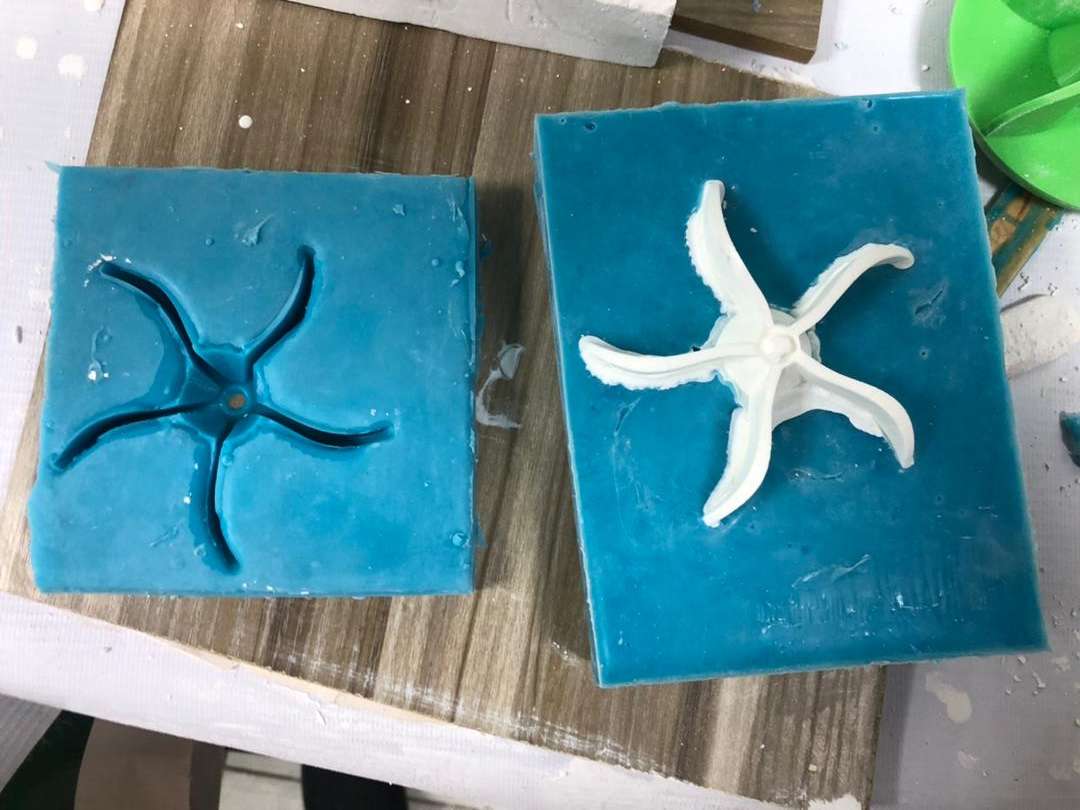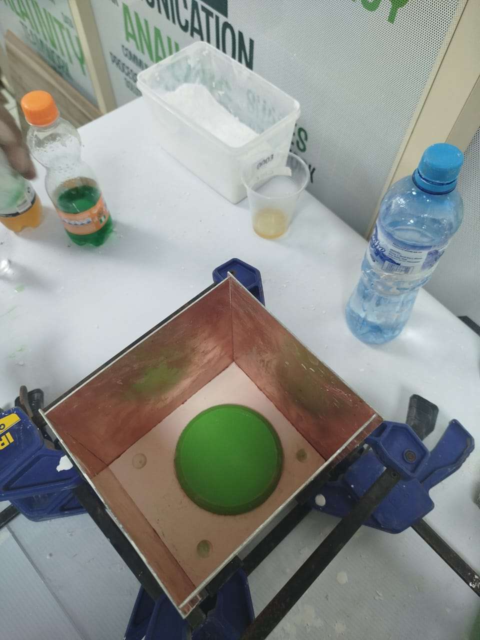 Then I used the bottom part of the mold I made from the wax to hold and secure the model so that I can cast the top part of the mold using the plaster.