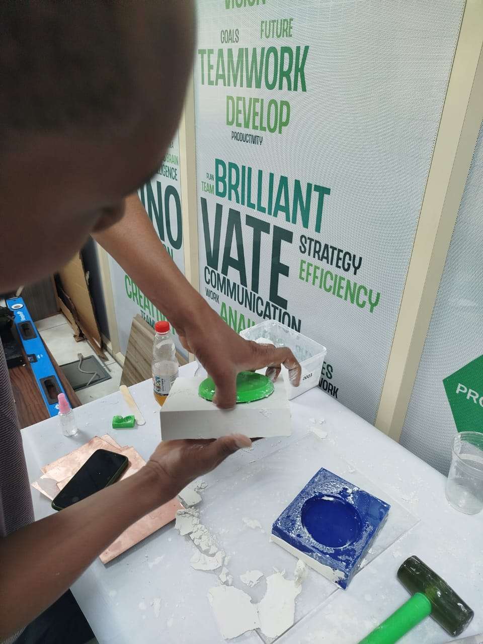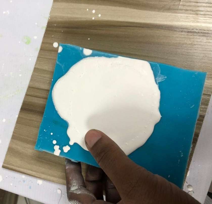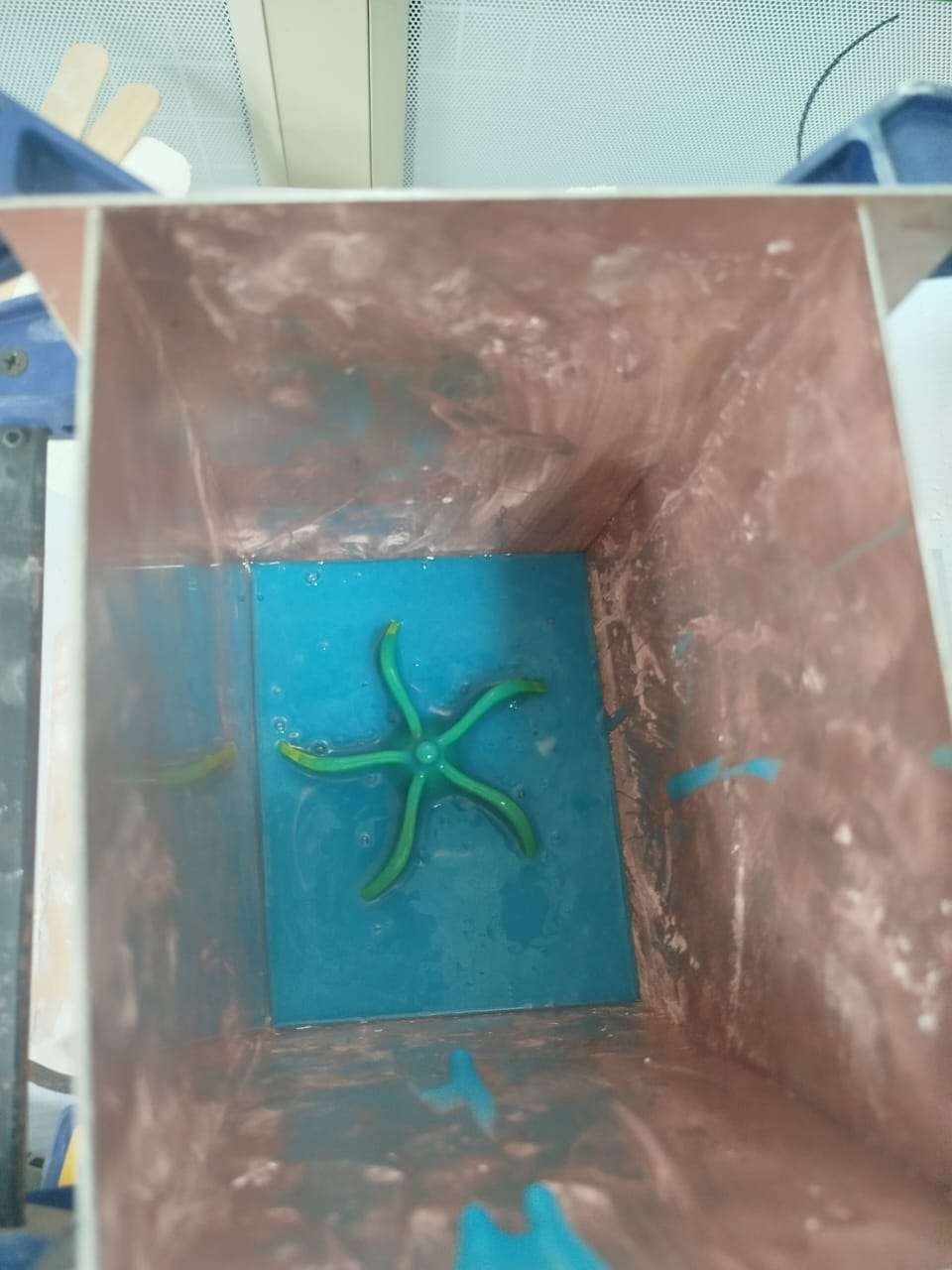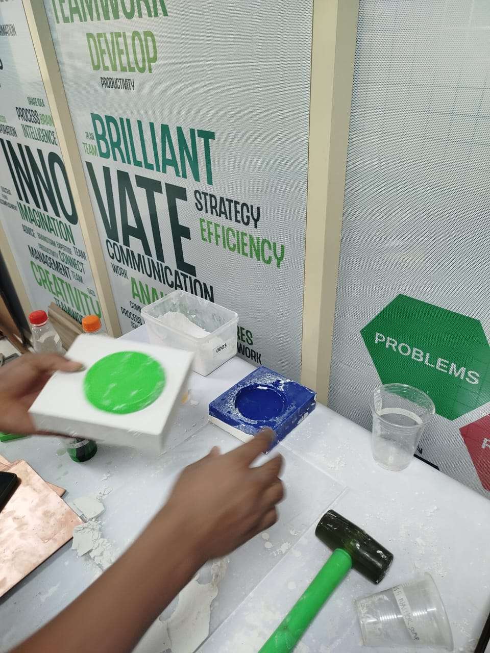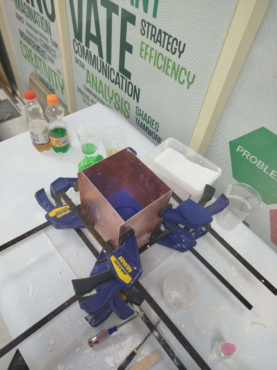 Then I used the bottom part of the mold I made from the wax to hold and secure the model so that I can cast the top part of the mold using the plaster.
