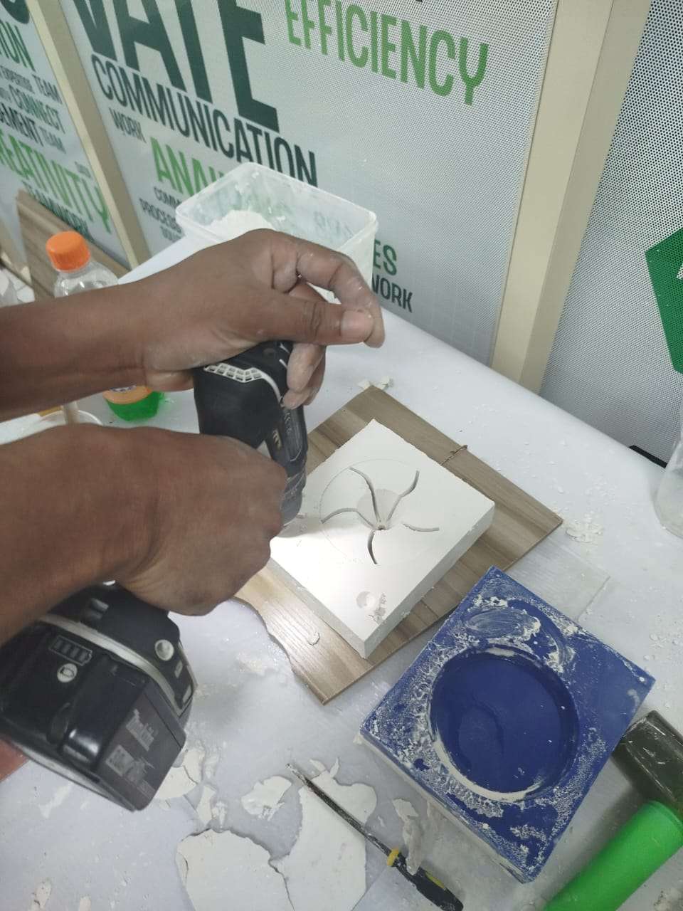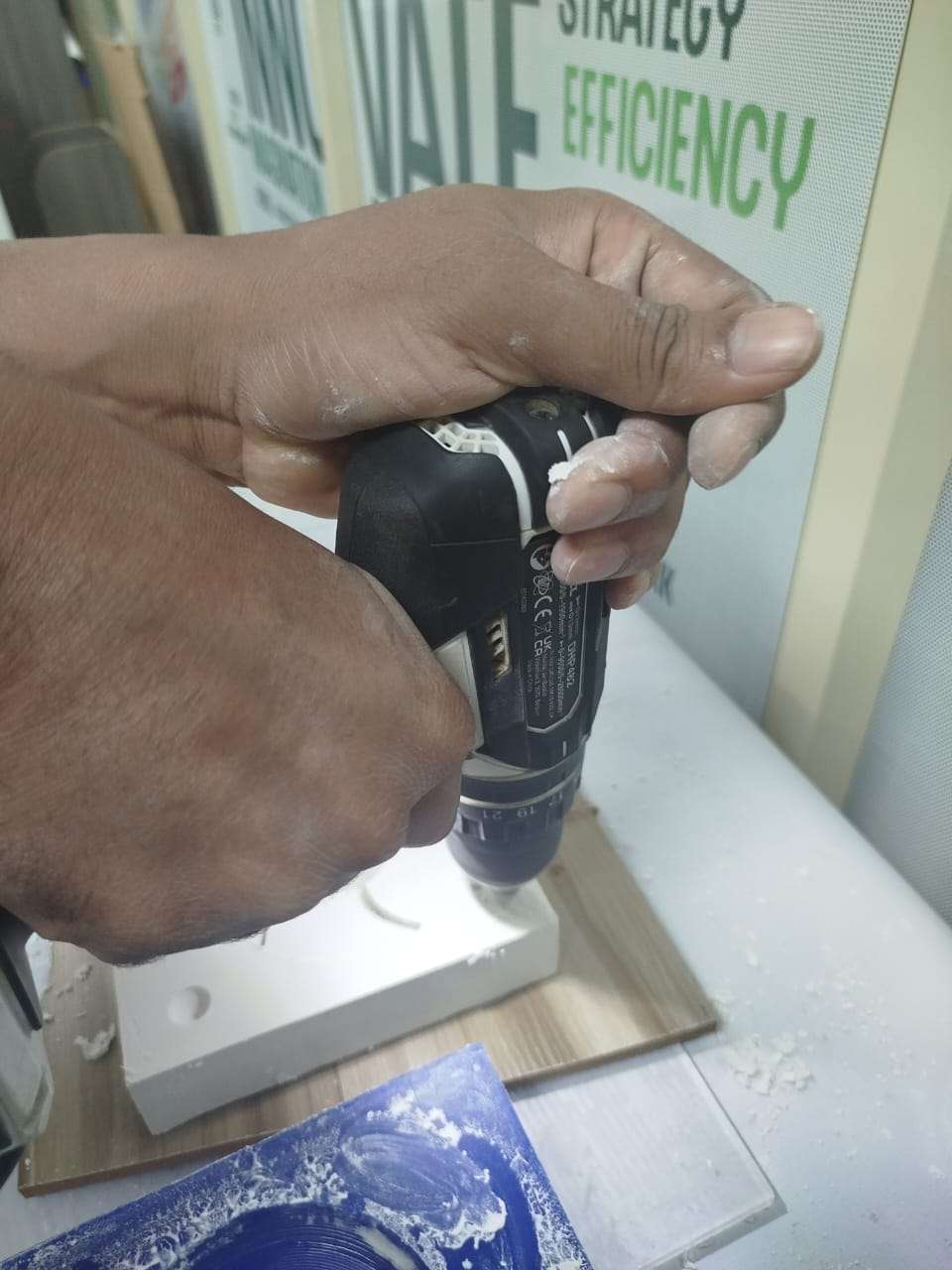 After drying for about 1 hour I drilled some registration marks on the mold to enable it fit correctly with the second part of the mold.