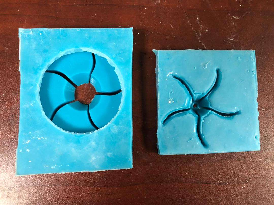 I used the silicone rubber mold to cast the propeller with both liquid plastic and plaster
