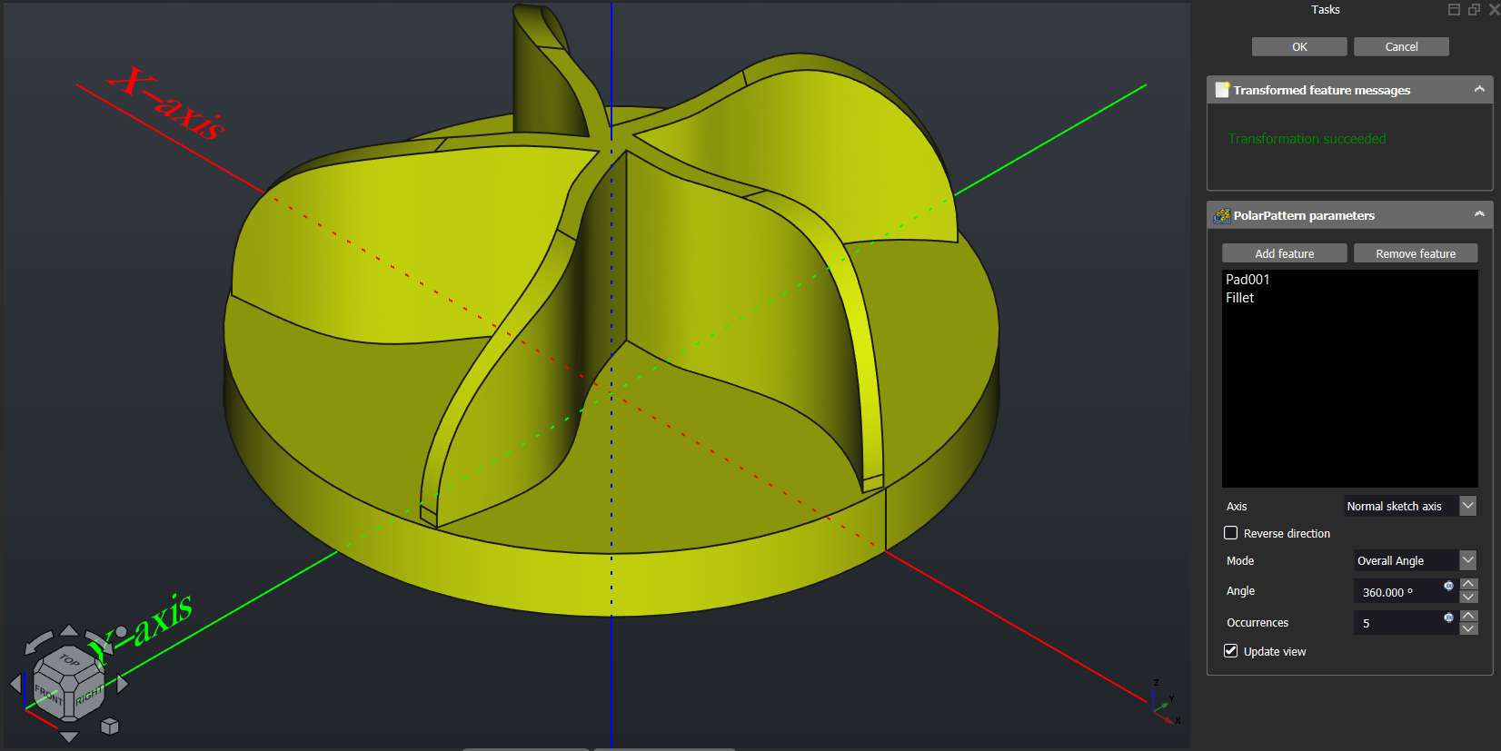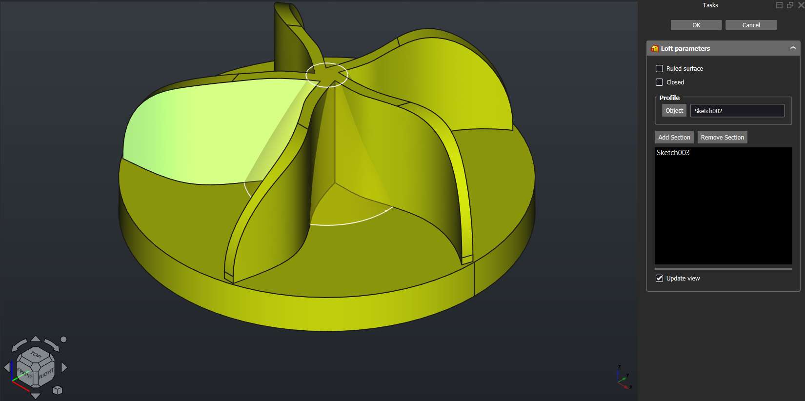 Since I intend to produce a mold out of this design, I added a cylinder at the top of the propeller to serve as a pouring hole for casting.