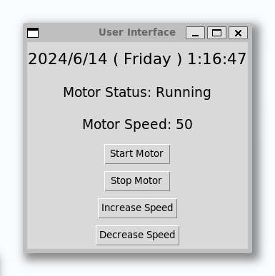 I used a python interface library called tkinter to create a UI that can control the motor connected to my board and display date and time read from the RTC module on my board.