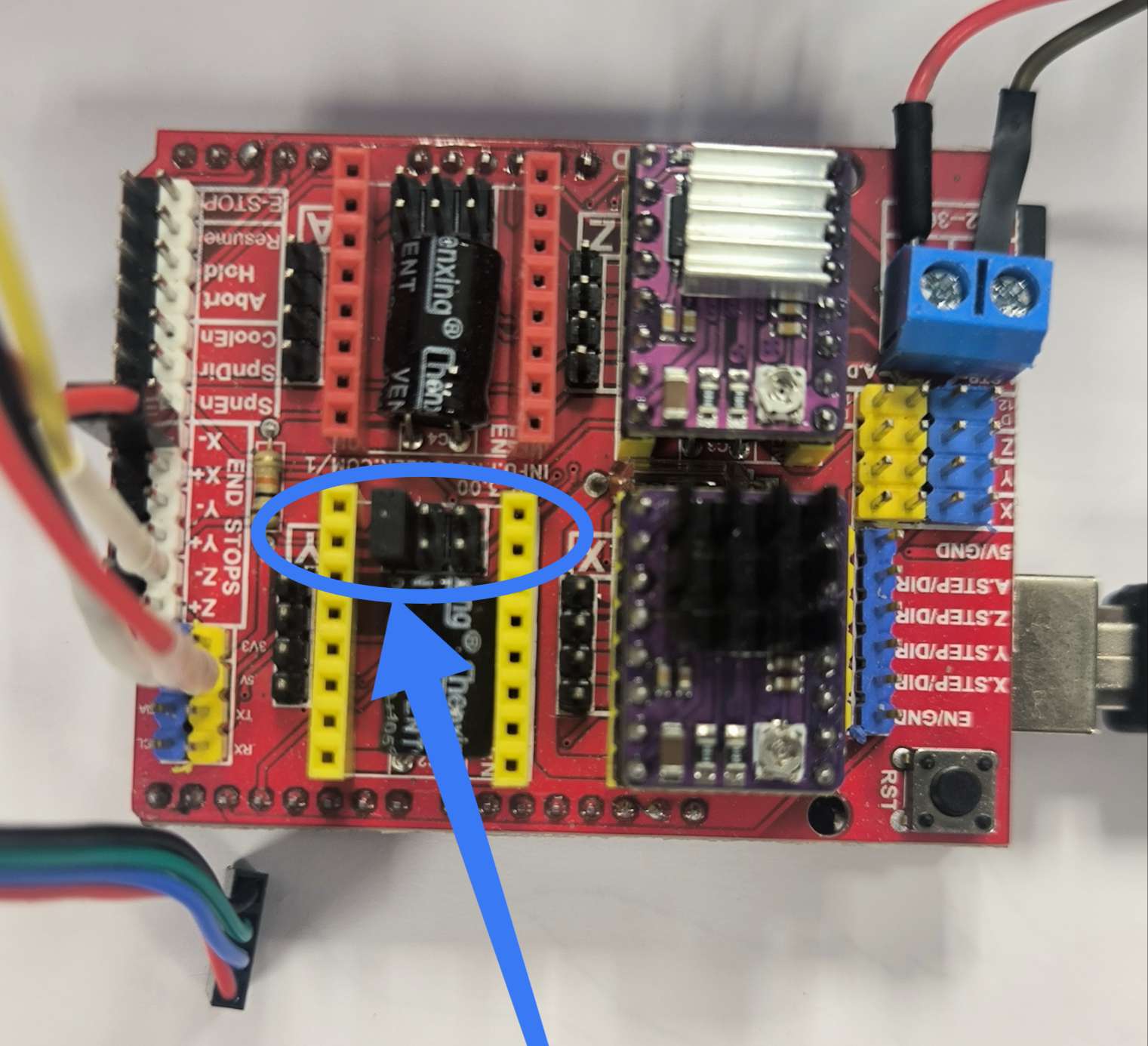 First step was to define the different motors in our design to an X, Y, Z or A from the CNC shield: