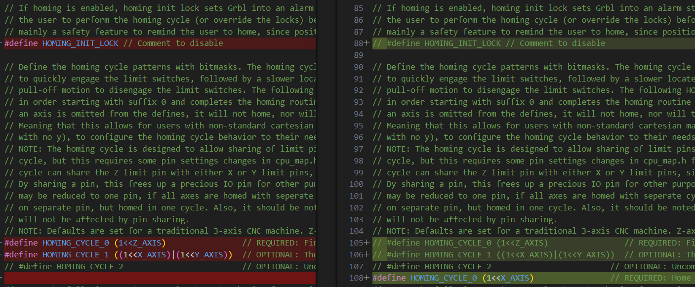 We then had to modify the config.h for our design following the steps described in [5]. The difference between the original and modified files is highlighted in the screenshots below.
