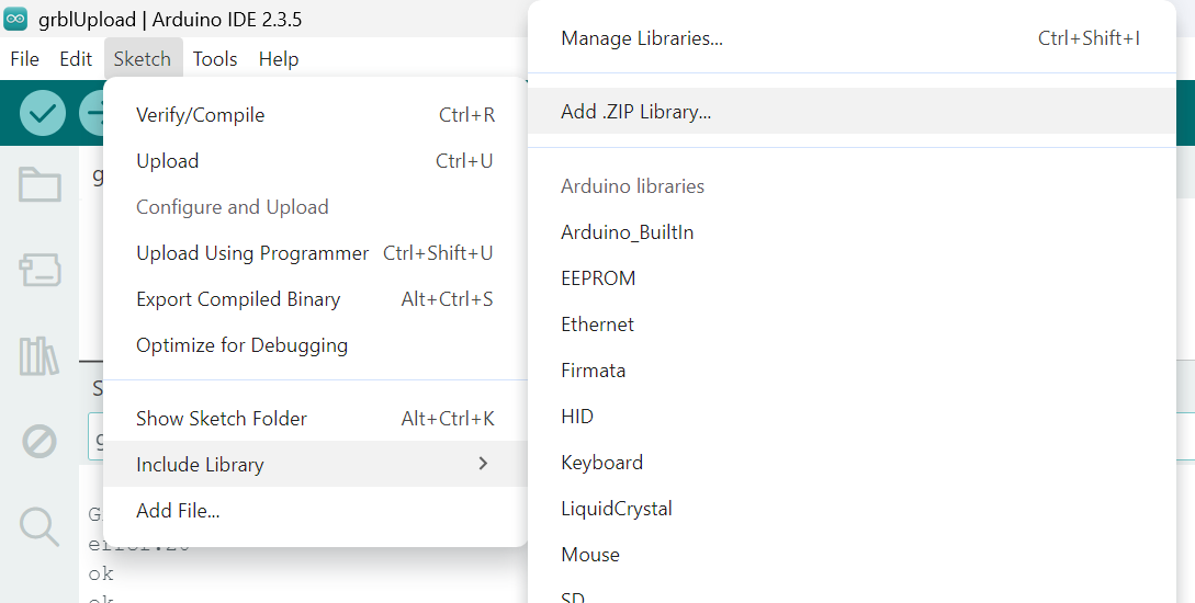 We downloaded the grbl-master file from github, then had to rezip the grbl library within on its own to then import it in Arduino IDE :