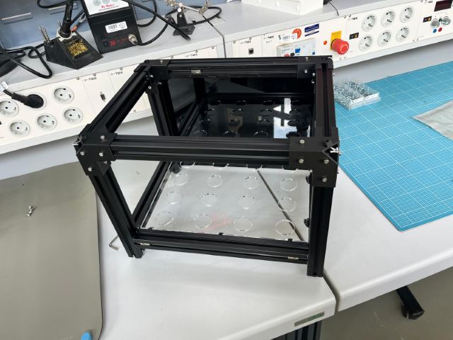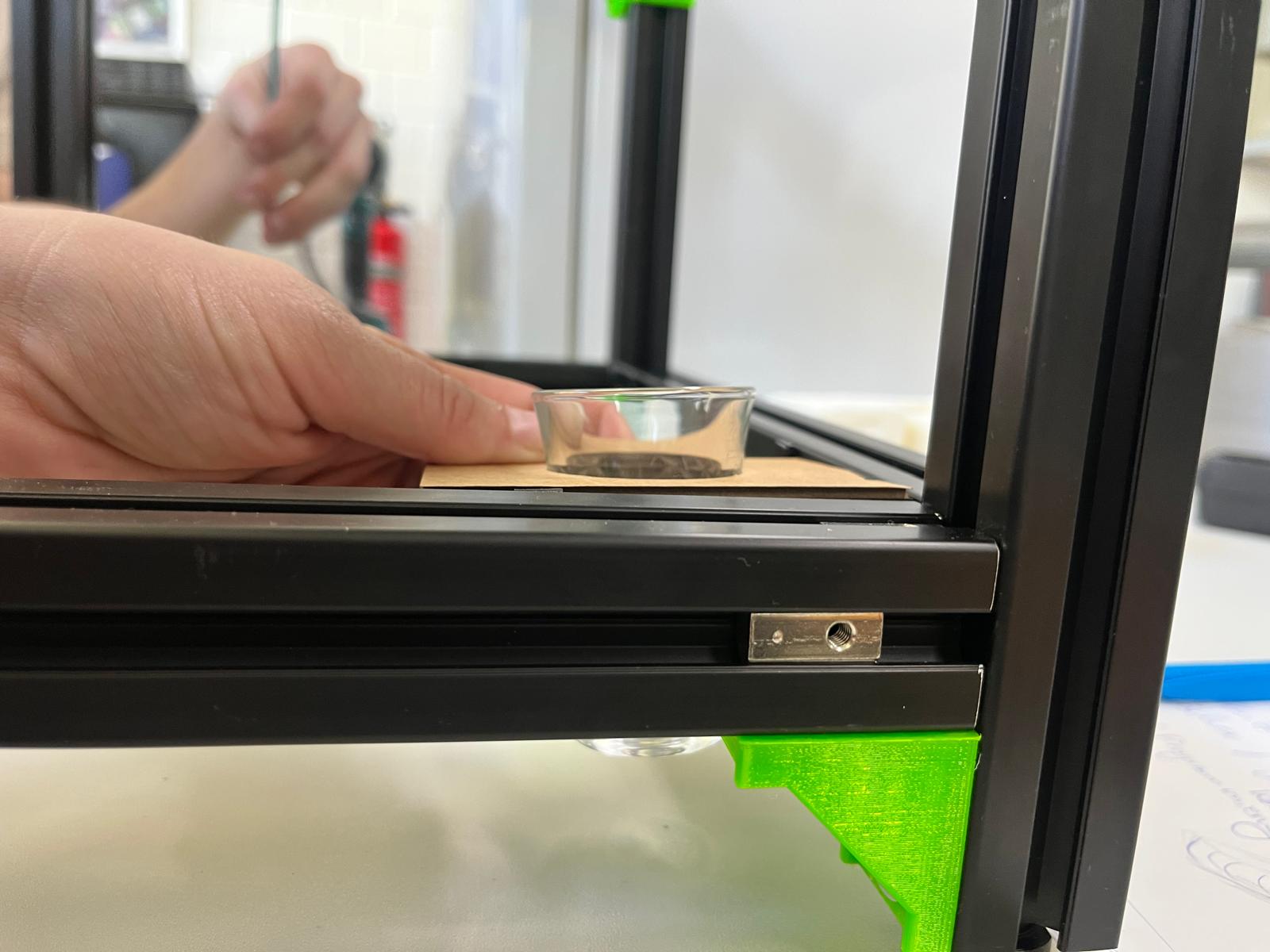 To optimize the connection between the aluminum profiles and screws, we used T-slot nuts, which allow for a stable, precise, and flexible mounting system within the aluminum rails.