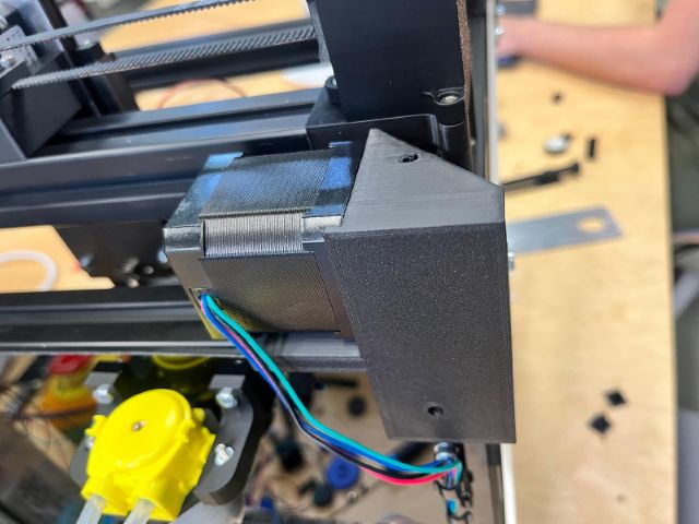 It is driven by a NEMA17 stepper motor in the upper back left corner of our frame.