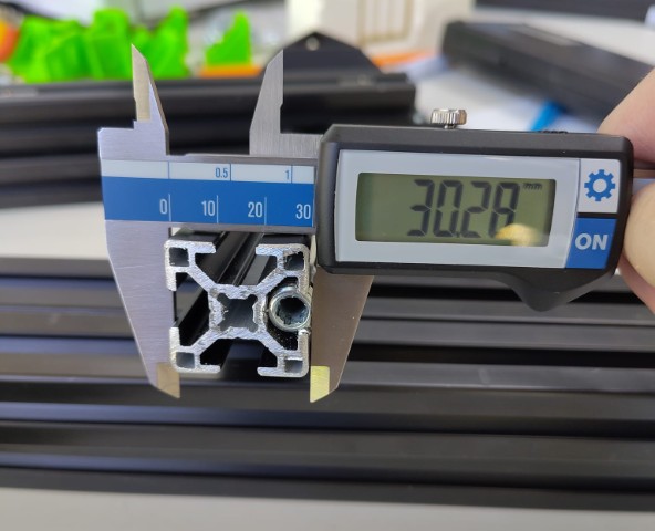 To build our machine’s frame we used 30mm x 30mm aluminum extrusions.