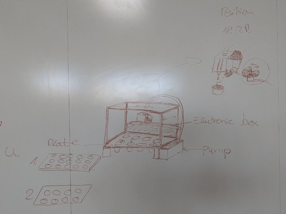 Our goal was to move beyond this setup. We wanted a fully automated system — and this was our very first sketch: