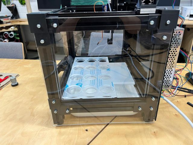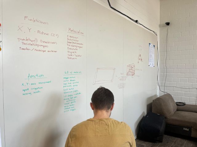 After the firmware was done we began writing a gcode script that makes our machine distribute water and seeds at specific locations.
