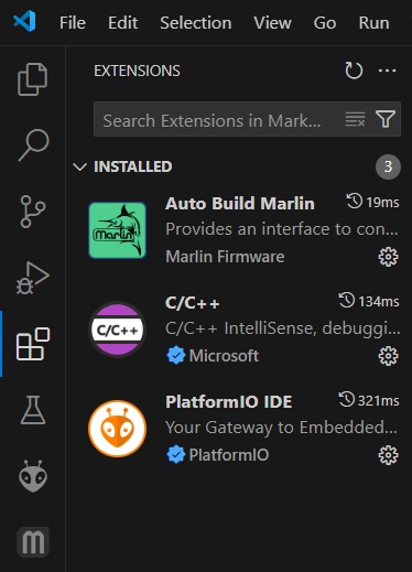 To be able to build the firmware for our machine, we needed to install two crucial extensions.
