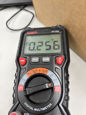 Then we measured the amps of the display. Since the OLED diaply is connected to the touch sensor, I need to hold the touch sensor so that the display is always on. We placed the negative pen of the multimeter on the GND pin of the display and the positive pen on the VCC pin of the display.