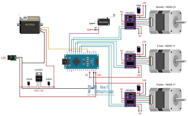mechanism where the bender touches the wire, uses gearing & mechanical advantage