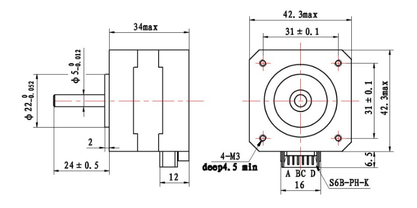 I based my measurements here off of the NEMA 17 datasheet, since we would use this motor. I structured the surrounding dimensions around these.