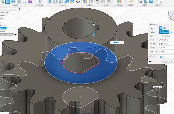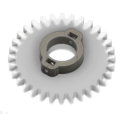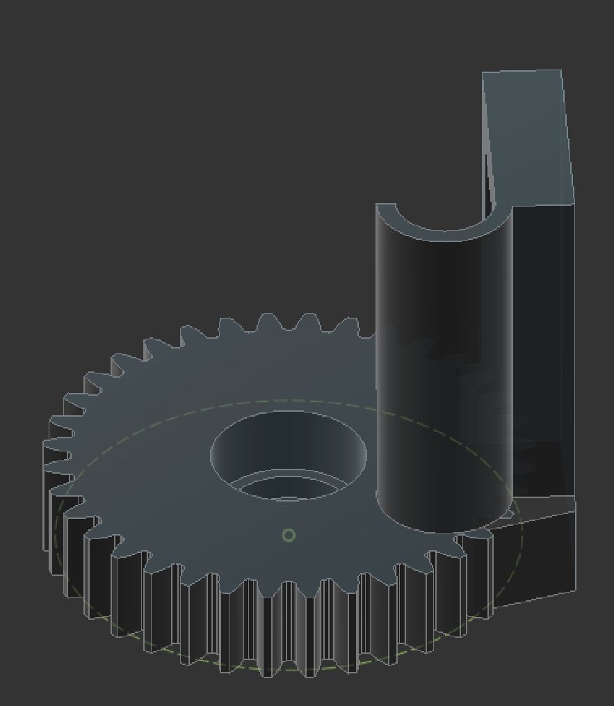 For the larger Z-axis, I used the add-in to make the gear then designed an addition to it so that it could be secured on the tube.