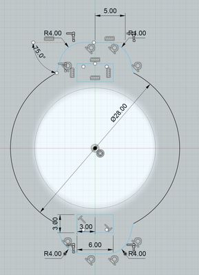 The wire clamp design involved creating a 30mm circle in the center and scaling a proportional gap at the top.