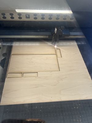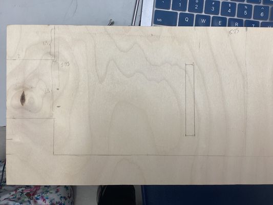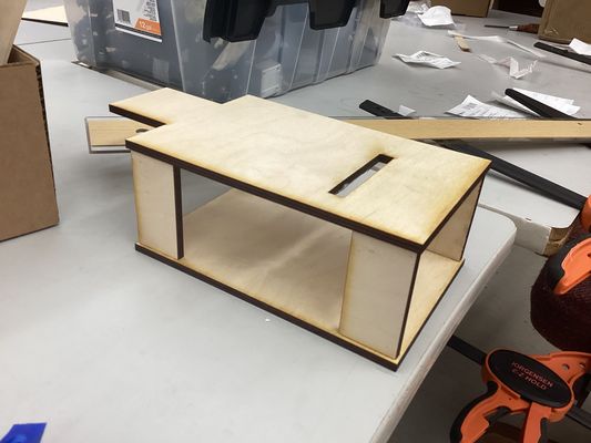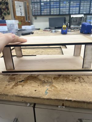 Originally, we were concerned about whether 0.25 inch plywood would be able to hold the weight of our machine. After this test frame, we decided that it would be fine and we would not need to use 0.5 inch instead. For our final base design, we needed a slit for one of the larger gears, the one that allows the wire bending mechanism to be turned.