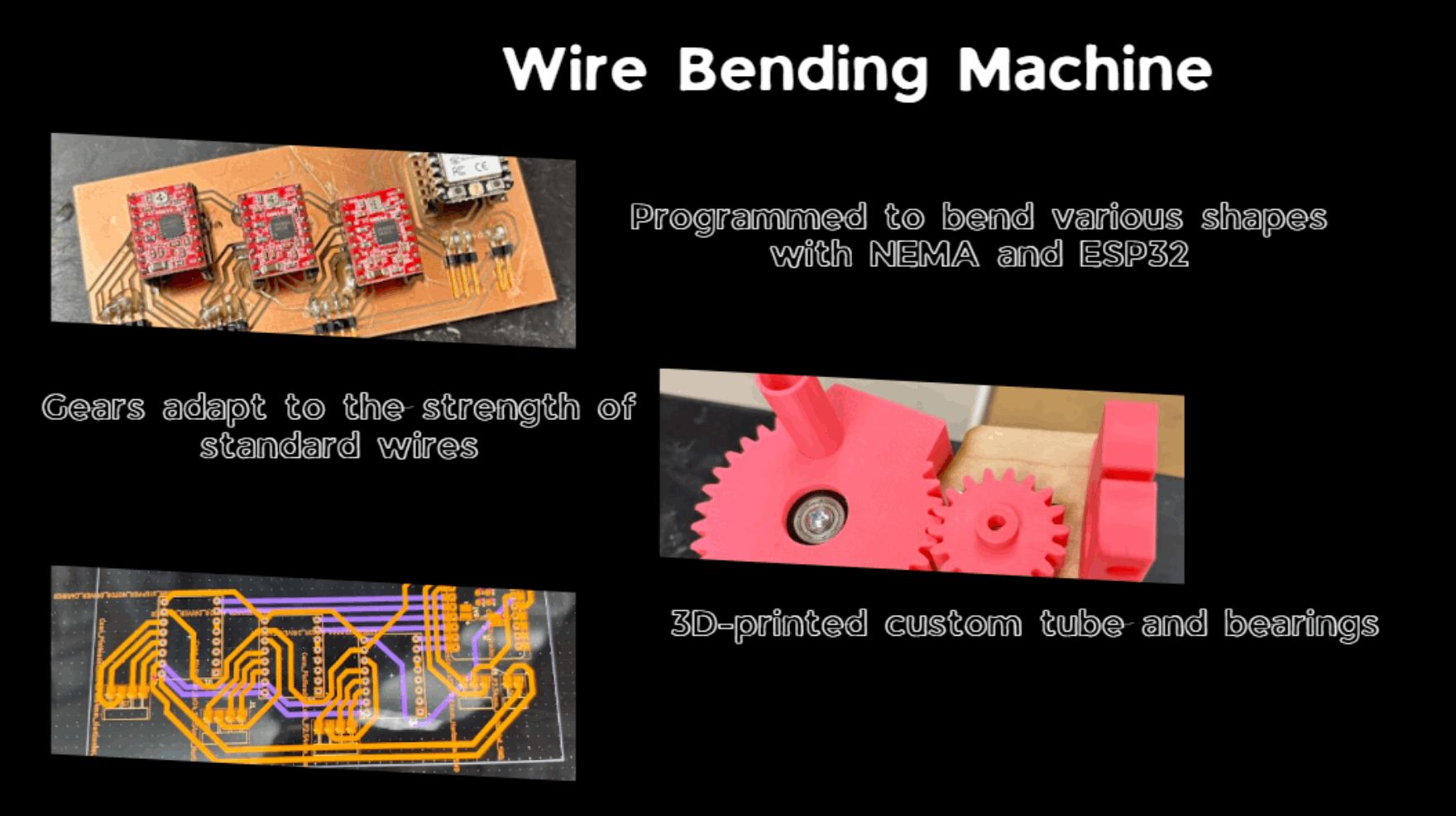 Our group — Angel Fang, Noah Smith, Kathryn Wu, and Jenna Chebaro — designed and built a machine capable of bending wire into custom shapes. Mr. Dubick proposed the idea, noting that having a machine in our lab capable of bending wire would be both a practical and engaging addition to our lab.