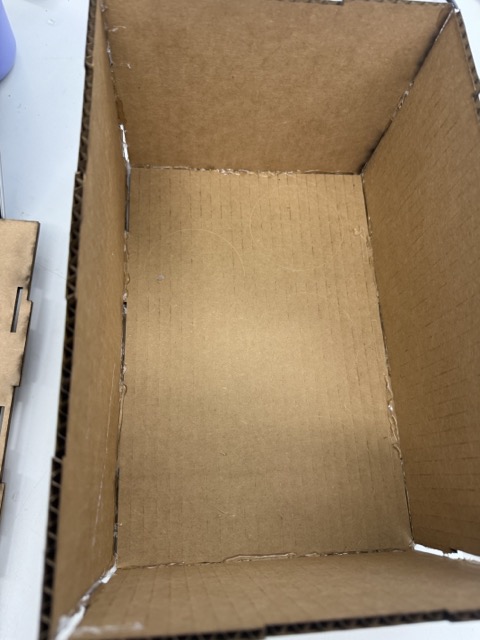 The first time I laser cut the box, I hot glued it together and it ended up ot fitting together even though I thought I had the dimensions correct. I assumed that the issue was because of my mesy hot gluing, so laser cut the same design again and had some help with the hot gluing to see if someone else could make it fit. However, that did not resolve the issue, so instead of going back to the old CorelDraw file and testing every line to make sure it was the right dimension, I just fully redesigned it because the height needed to be increased as well.