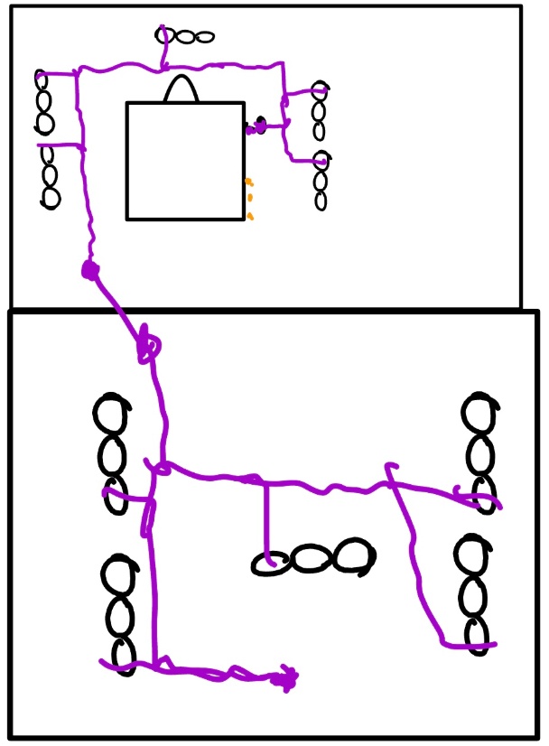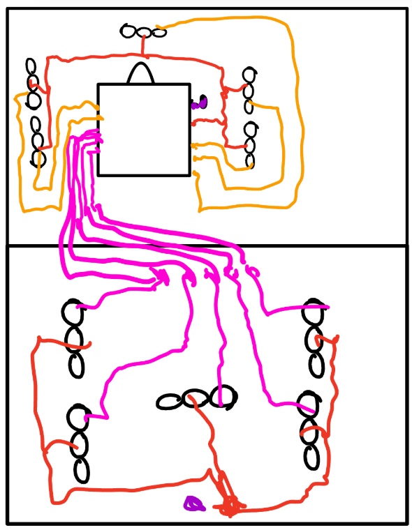 Once we had a working code for all 5 servos and sensors I started designing the PCB. For the PCB I knew it was going to need to be double sided since I had made similar board for my output week. With that in mind I first made a quick sketch of how all the wiring would go so that it wouldnt overlap in a drawing software: