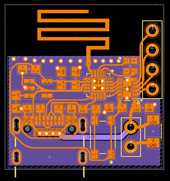 I really cooked here. The first placements were getting the pins and antenna facing away from eachother, and then I saw it fit the size of the USB-A so well, and fit the ch572d in the middle. This is probably my first board that looks actually halfway decent aesthetically. I sadly didn't use curved traces on this one, since I was still experimenting with my style at that point