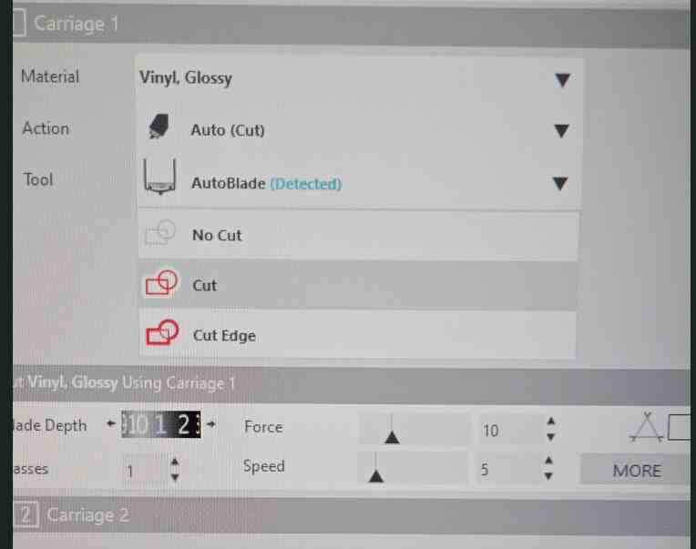 I only needed to change the top field of this image, to make it Vinyl, Glossy, which changed all other settings to be the best for vinyl glossy. While their software isn't the most advanced, it is a pleasure to work with when it does work.