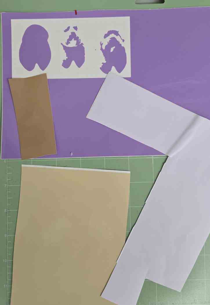After cutting and weeding, I ended up with all the parts of scoobert, scaled correctly and in the right colors. I then realized they were not the right colors. Specifically, the white shade just wasn't the color that he actually was.