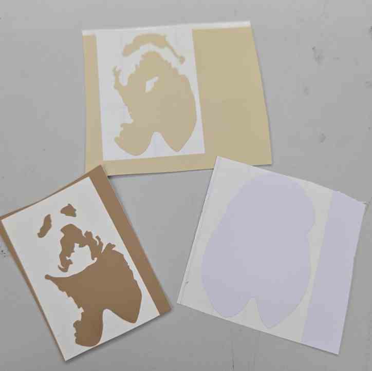 . The only thing im sad about with this is that I feel now the backing color is still not perfect, its just a bit too bright compared to the reference image. This helped me learn alot about the tracing feature in both inkscape and silhouette studio, which will always be helpful to future projects. it also taught me which vinyl cutters in my lab are better at cutting, and important lessons in how to fix my mistakes in multi layer vinyl cutting.