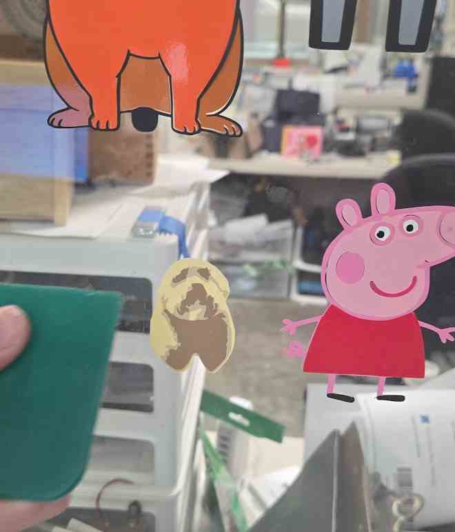Fixing this was an unfun experience. I basically peeled apart the the two stickers, paying attention to not rip anything. This is much more stressful than it sounds, with a small mistake requiring a restart. This also compounded with the fact that I did not have enough vinyl to cut another top layer, meaning that there was no restarting if I made a mistake. In the end, I successfully peeled them apart