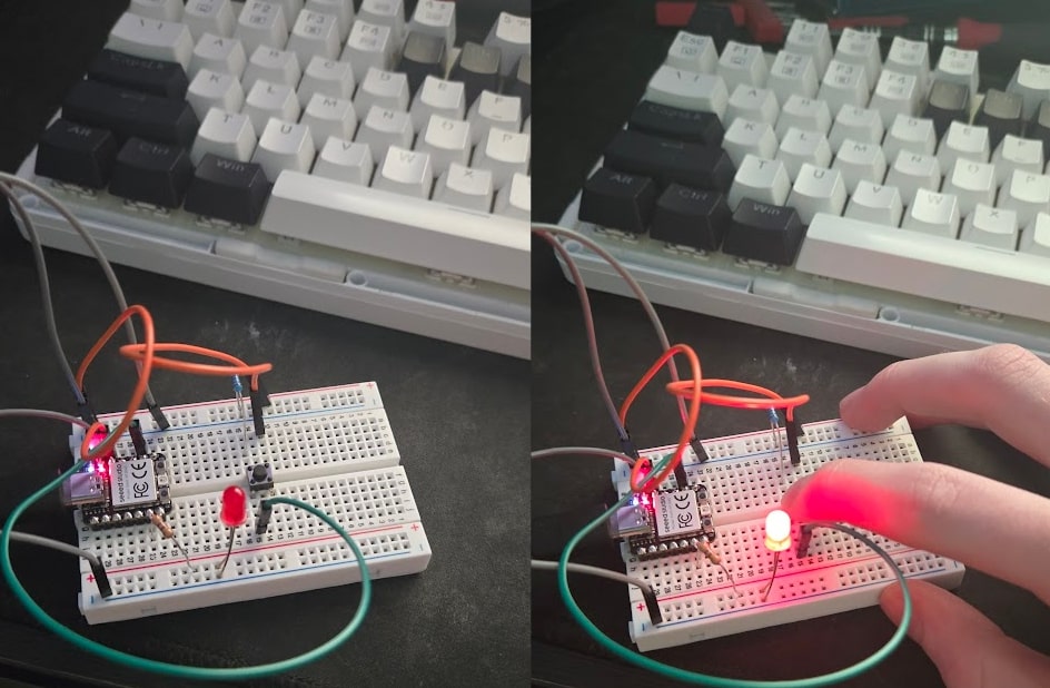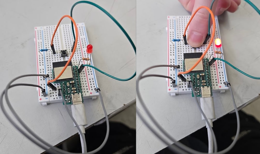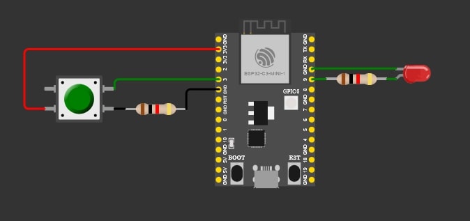 The esp32-c3 is my favorite microcontroller, and for that reason I also think that it is probably the single best microcontroller that exists. It combines high computing power, wireless, decent power consumption, good community support, and built in USB support. All of these are the reasons why I built my own. Before doing anything advanced with the ESP32-C3, I needed just to test a simple button and LED. and before building anything, I needed to simulate it online. The Wokwi Project can be found here