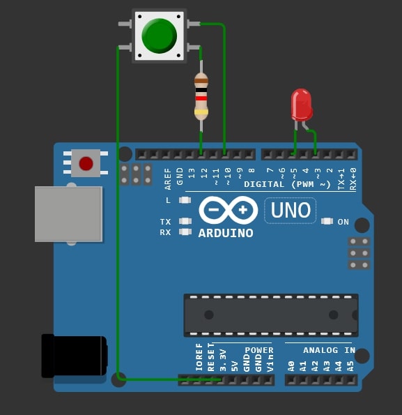 It is safe to say that it is the first microcontroller 70&% of new learners use, and for good reason. It is incredibly easy to work with, very hard to blow up, and is the single most well supported microcontroller by the community and the company behind it. For the simulation, I just did a simple button as an input, and a LED as an output. the link to the wokwi project is here