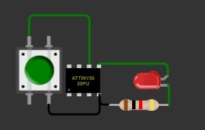 while wokwi doesn't display the fact that it supports an attiny chip, a google search reveals that it has simulator using an ATTiny85 chip. While this chip is not the same as the one im going in depth on, it has the same pins and therefore can be used as a rough simulation in wokwi. In a simulator, the ATTiny is very easy to work with, however in real life that isn't the case.