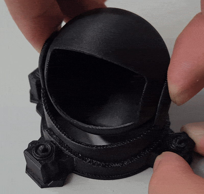 the changes I made to the design were not that big, and I am certain the head to neck interlock will be changed. The base interlock might not be, or more likely will be slightly changed, as I really like how it can be lifted apart. I also had to keep in mind support usage, which is why I ended up printing the head the way it was. Also, just seeing the intricate details I slaved over in week 2 was a really fun experience, and overall it reinforced why 3d printing is king for quick 3d prototyping. I plan on using 3d printing for the entirety of my project, with the exception of my faceplate, which I hope to use milling and casting to make some clear object.