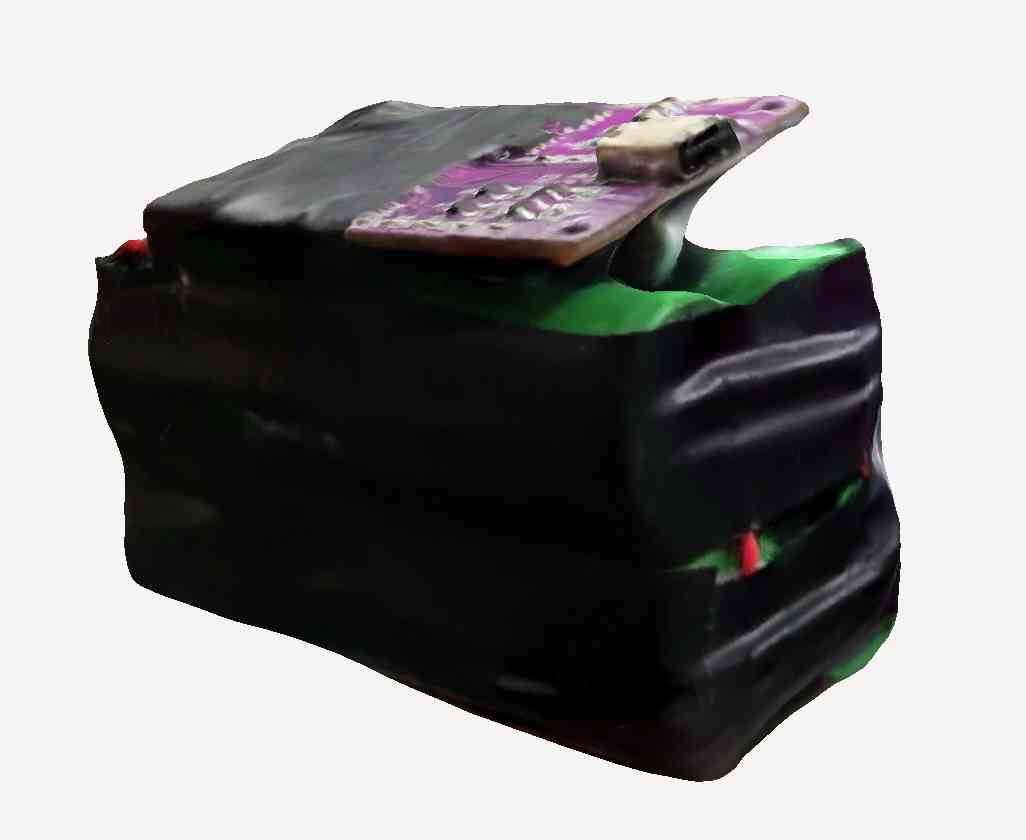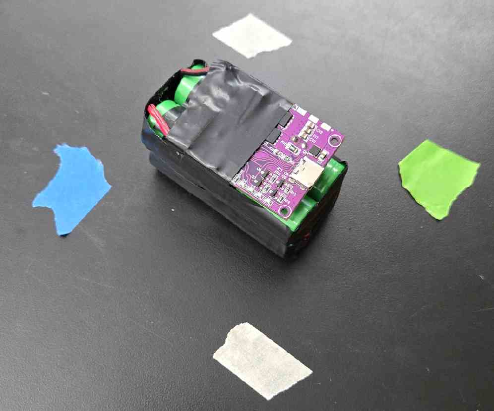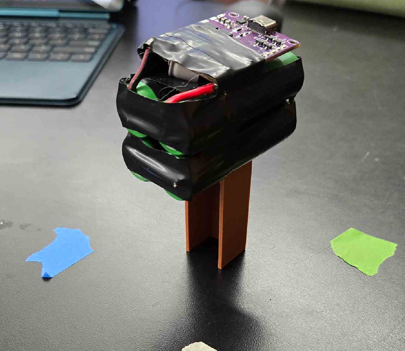 This setup resulted in my first working scan, but I still had a really obvious issue, the bottom of the battery was not visible. This, compounded with the other issue of the shadow acting like a hole, which would result in a bad scan. I fixed this by finding a random 3d print, and setting the battery pack ontop of that, as seen below