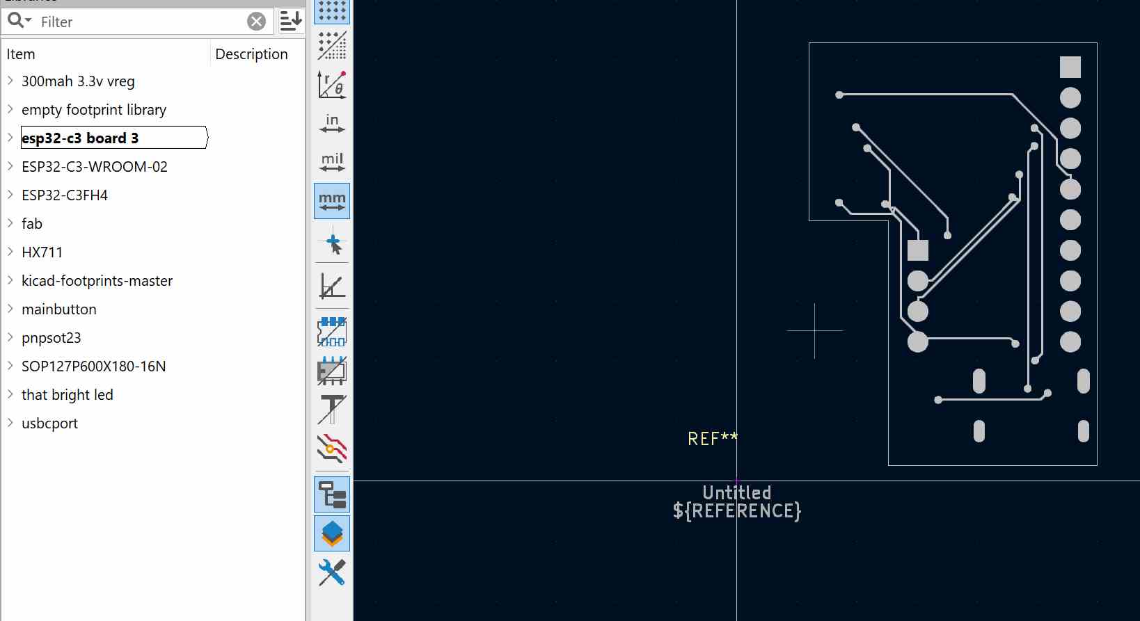 I have never used the microcontroller I made for directly soldering onto a board, I usually use it with a breadboard, and therefore I needed to make a custom footprint and symbol of the board.